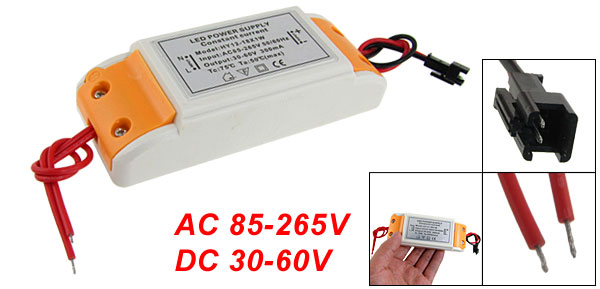 Product Name 18 x 1W LED Driver Power Supply Model No. HY12-18X1W Input AC 85-265V 50/60Hz Output DC 30-60V 300mA Plug Type 2 Pins Plug External Material Plastic Size 11.5 x 4.5 x 2.7cm / 4.5'' x1.8'' x 1.1'' (L*W*H) Wire Length 11cm / 4.3" Main Color Orange, White Net Weight 86g Package Content 1 Pcs 18 x 1W LED Driver Power Supply - Reviews