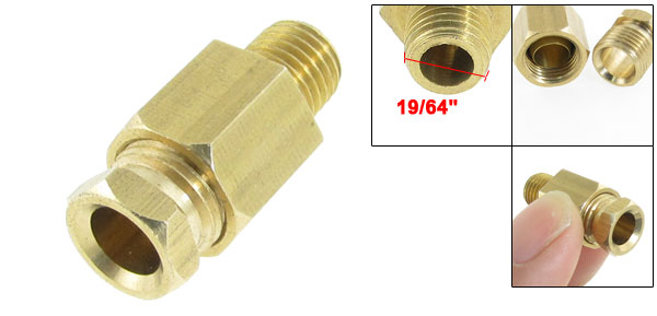 Product Name Brass Connector Design Straight, 2 Way Hole Diameter 6mm/ 15/64" Male Thread Diameter 7.5mm/ 19/64" Overall Size 21 x 14mm/ 0.83" x 0.55" (L*D) Material Brass Color Gold Tone Net Weight 12g Package Content 1 x Brass Connector - Reviews