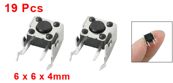 19 Pcs 6x6x4mm 2 Pins Right Angle Momentary DIP Tactile Tact Push Button Switch