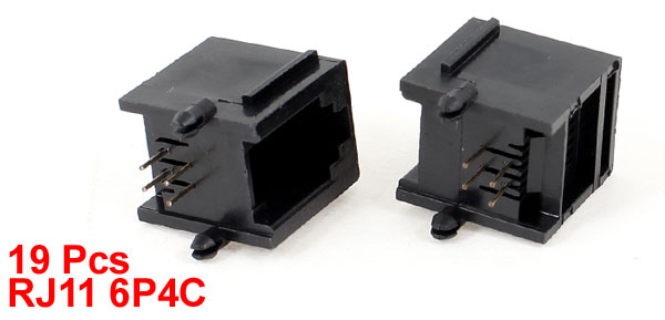 19 Pcs Black Plastic Unshielded RJ11 6P4C Network Modular PCB Connector Jacks