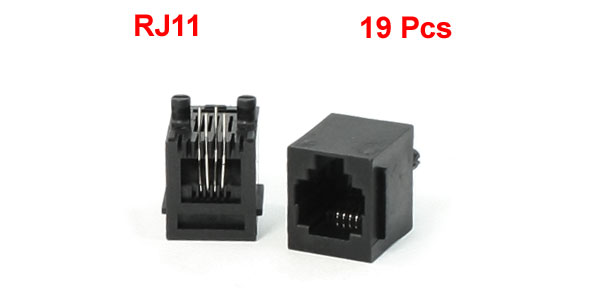 19 Pieces Vertical Mount PCB Ports RJ11 4 Pin 6P4C Network Jacks