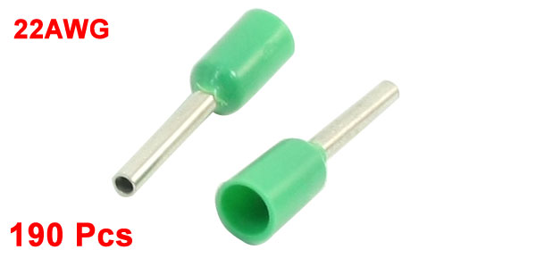 190 Pcs E0508 Green Sleeve Pre Insulating Ferrules Terminals for 22AWG Wire