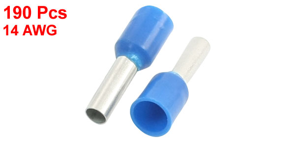 190 Pcs E2508 14AWG Wire Blue Plastic Sleeve Pre Insulation Wiring Terminals