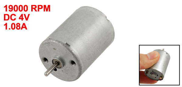 Details19000 RPM DC 4V 1.08A 2mm Shaft Micro Motor for DIY Toys  Product Name DC Micro Motor Model NO. RC370C-5530-42 Rated Voltage DC 4V Current(no load) 1.08A Speed(no load) 19000RPM Body Size 24 x 31mm / 0.9" x 1.2" (D*H) Shaft Dia. 2mm/ 0.078" Total Length 45mm / 1.77" Main Color Silver Tone Material Metal Weight 48g Package 1 x DC Micro Motor