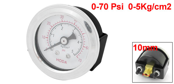 Product Name Pressure Gauge Material Metal Range 0-70 Psi, 0-5Kg/cm² Thread Diameter Bigger One: 10mm / 0.39"