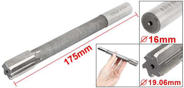 Product Name Straight Shank Chucking Reamer Material HSS Flute Number 6 Cutting Diameter 19.06mm/ 3/4" Cutting Depth 30mm/ 1 1/5" Shank Diameter 16mm/ 5/8" Total Length 175mm/ 6.9" Color Silver Tone Weight 79g Package Content 1 x Straight Shank Chucking Reamer - Reviews