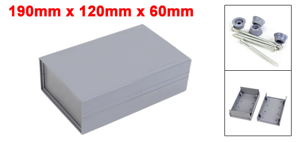 Product Name Junction Box Total Size 190 x 120 x 60mm/7.5" x 4.7" x 2.4"(L*W*H) Material Plastic Color Gray Net Weight 232g Package 1 x Junction Box