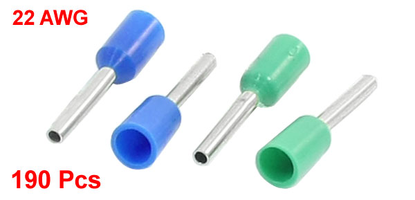 190Pcs E0508 Green Blue Sleeve Pre Insulative Ferrules Terminals for 22AWG Wire