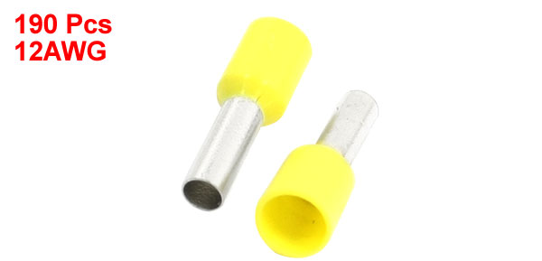 190Pcs E4009 12AWG Wire Pre-Insulate Ferrules Terminals Wiring Connectors Yellow