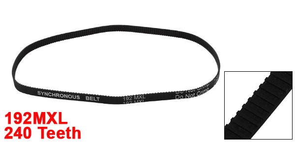 Details192MXL 025 240 Teeth 2.032mm Pitch 6.4mm Width Industrial Timing Belt Black  Product Name Timing Belt Model 192MXL Number of Teeth 240 Code Number 025 Teeth Pitch 2.032mm/ 0.08" Belt Width 6.4mm / 0.25" Pitch Length 487.68mm/ 8.8" Material Rubber Color Black Weight 7g Package Content 1 x Timing Belt