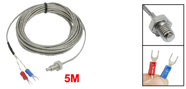 Product Name Thermocouple Probe Type K Type Fork Pin Number 2 Temperature Range 0 C-400 C Screw Dia 8mm/0.31" Pin Pitch 4.3mm/0.17" Fork Pin Size 4.6 x 26mm/ 0.18" x 1"(Dia*L) Pin Spacing 4mm/ 0.2" External Shield Material PTFE Total Length(Approx.) 5 Meters / 197" Color Clear White Weight 61g Package Content 1 x Earth Thermocouple Probe - Reviews