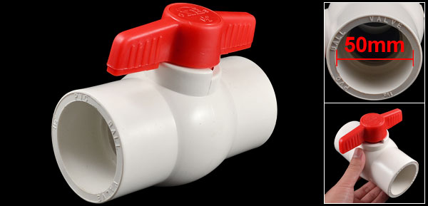 Product Name Ball Valve Ends Type Slip x Slip Slip End Size 50mm x 50mm / 1.97" x 1.97" Handle Size 11 x 3.2cm/ 4.3" x 1.3"(L*Max.W) Overall Size (Approx.) 12.6 x 11 x 9cm/ 5" x 4.3" x 3.5"(L*Max.W*H) Color White, Red Material PVC Weight 381g Package 1 x Ball Valve - Reviews