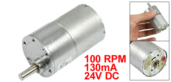 Product Name Gear Motor Rated Voltage DC 24V Rated Current 130mA Rated Torque 1.99Kg.cm Rated Speed 100 RPM Shaft Size 15 x 6mm/0.6" x 0.24" (L*D) Motor Body Length 58mm/2.3" Motor Body Diameter 37mm/1.46" Thread Diameter 2.5mm/0.1" Total Length(Included Pin) 83mm/3.3" Material Metal, Electronic Parts Color Silver Tone Weight 200g Package Content 1 x Gear Motor  - Reviews