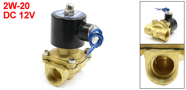 Product Name Solenoid Valve Model 2W-20 Type 2 Way 2 Position NC Material Metal Voltage DC 12V Thread Size PT 3/4" Thread Inside Diameter 16mm Operating Pressure Min. 0- Max. 10Mpa Bore Diameter 20mm Female Thread Dia 6mm / 15/64" Cable Length 16cm / 6.3" Total Size (Approx.) 62 x 53 x 113mm / 2.4" x 2.1" x 4.4"(L*W*T) Color Golden Tone, Black, Blue Weight 690g Package Content 1 x Solenoid Valve - Reviews
