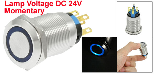 Item Name Push Button Switch Contact Type Momentary (1NO 1NC) Model MP019S/F11 Head Shape Flat Round Switch Rating AC250V, 5A Lamp Voltage DC 24V LED Color Blue Pin Number 5 Mounting Thread Diameter 19mm / 0.75" Total Size (Approx.) 41 x 25mm / 1.61" x 0.98" (L*W) Material Stainless, Electric Parts Housing Color As Picture Shown Net Weight 22g Package Content 1 x Push Button Switch - Reviews