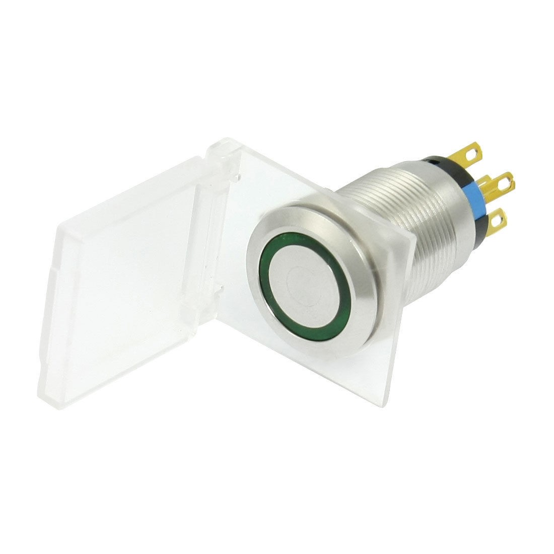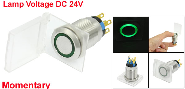 19mm 24V Momentary Green LED Stainless Push Button Switch w Cover