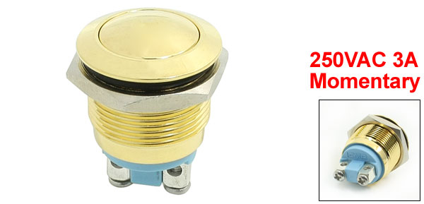 Main Color Gold Tone Brand Assisi Terminal Number 2 Country of Manufacture CHINA Material Metal Contact Type NO Total Size 30 x 22mm/1.2" x 0.87"(L*Max.W) Product Name Push Button Switch Net Weight 20g Mounting Size 19mm Pole and Throw SPST Package Content 1 x Push Button Switch Mounting Type Nut Mount Switch Rating AC 250V, 3A Oeperation Type Momentary - Reviews