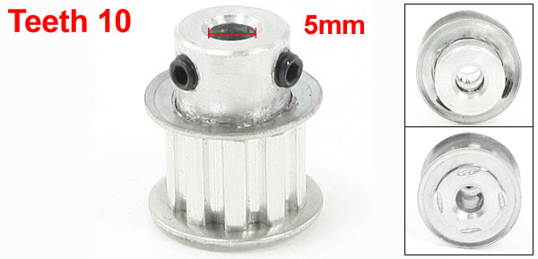 Product Name Timing Pulley Type XL10 Number of Tooth 10 Pitch 1.5mm/ 1/16'' Overall Size 19 x 22mm/2'' x 0.86''(D*H) Bore Diameter 5mm/ 1/5" Fit Belt Width 11mm/0.43'' Material Aluminum Color Silver Tone Weight 11g Package Content 1 x Timing Pulley - Reviews