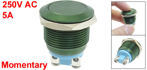 Details19mm Flush Mounted Momentary SPST Green Stainless Steel Round Push Button Switch  Main Color Green Brand Assisi Country of Manufacture CHINA Terminal Quantity 2 Material Stainless Steel, Plastic, Electric Parts Contact Type NO Total Size 28 x 25mm/1.1'' x 1'' (L*Max.W) Product Name Push Button Switch Net Weight 14g Mounting Size 19mm Pole and Throw SPST Package Content 1 x Push Button Switch Mounting Type Flush Mount Switch Rating 250VAC 5A Oeperation Type Momentary