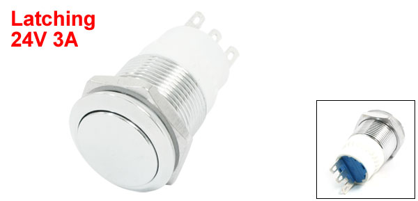 Product Name Push Button Switch Contact Type SPDT Rating Voltage 24V 3A Actuator Type Latching Position 2(1NO 1NC) Pin Number 3 Thread Dia 19mm / 0.75" Button Dia 16mm / 0.63" Overall Size(Not Included Pin ) 31 x 22mm / 1.2" x 0.87" (L*W) Material Stainless Steel Color Silver Tone Weight 19g Package Content 1 x Push Button Switch - Reviews