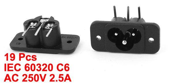 19pcs Black Plastic Male Plug IEC60320 C6 Inlet Adapter AC 250V 2.5A