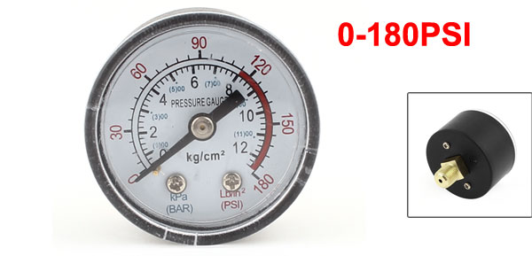 Product Name Pressure Gauge Range 0-180PSI Dial Dia(Approx) 4.2cm/1.7'' Total Size(Approx) 4.2 x 4cm/1.7" x 1.6"(D*H) Inlet Thread Dia(Approx) 1cm/0.4" Material Metal Color Black, Gold Tone Net Weight 25g Package Content 1 x Pressure Gauge - Reviews