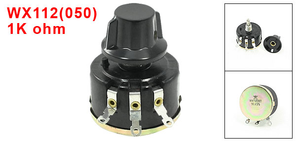 Product Name Wire Wound Potentiometer Model WX112(050) Type Single Turn Resistance Value 1K ohm Tolerance 5% Technology Wire Wound Terminals Number 3 Potentiometer Body Size 43 x 25mm / 1.7" x 1"(D * H) Potentiometer Total Height 47mm/1.9" Rotary Knob Cap Size 19 x 30mm/0.7" x 1.2"(H*Max.D) Screw Thread Dia. 10mm / 0.4" Shaft Diameter 6mm / 0.24" Shaft Length 90mm / 0.35" Color Black, Copper Tone, Black Net Weight 50g Package Content 1 x Wire Wound Potentiometer w Knob - Reviews