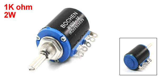 Product Name Wire Wound Potentiometer Model WXD3-12-2W Type Multi Turn Resistance Value 1K ohm Tolerance 5% Rating Power 2W Technology Wire Wound Terminals 3 Solder Lugs Body Size 26 x 21mm / 1.1" x 0.8"(H*D) Screw Thread Dia. 8mm / 0.31" Shaft Diameter 4mm / 0.16" Shaft Length 12mm / 0.47" Total Length 48mm / 1.9" Main Color Black, Blue Weight 19g Package Content 1 x Wire Wound Potentiometer - Reviews