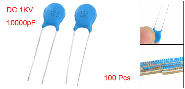 Product Name High Pressure Ceramics Capacitors Withstand Voltage DC 1.5KV Rate Voltage DC 1KV Capacitance 10000pF Capacitance Tolerance M(±20%) Lead Spacing 5mm / 0.2" Lead Diameter 0.4mm / 0.015" Total Size 0.8 x 0.7 x 0.2cm / 0.3" x 0.27" x 0.08"(L *W *T) Weight 38g Main Color As Picture Show Package Content 100 x High Pressure Ceramics Capacitors - Reviews