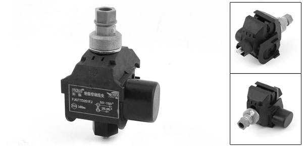Product Name Insulation Piercing Connector Model FJ6/TTD251FJ Applicable Voltage 1KV Nominal Current 377A Main Line 50-150 mm2 Branch Line 25-95 mm2 Bolt Number 1 x M8(13) Torque Nut F1318 Total Size 90 x 62 x 57mm/ 3.5" x 2.4" x 2.3"(L*W*T) Material Metal, Plastic Color Black Weight 56g Package 1 x Insulation Piercing Connector - Reviews