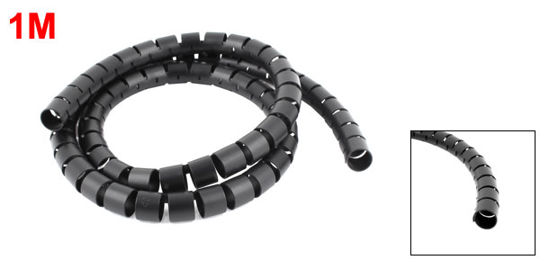 1m 3.3ft 15mm Inner Dia Black Spiral Wrapping Bands Cable Organizer Wrap