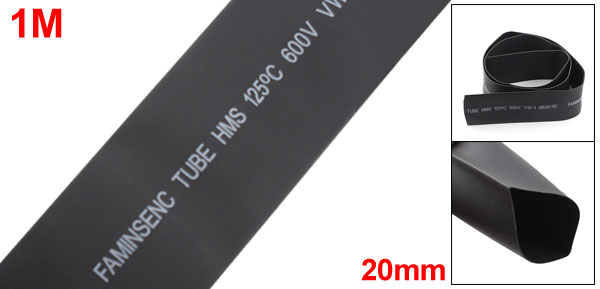 1M 3Ft 20mm Dia Polyolefin Heat Shrinking Shrinkable Tubing Tube Black