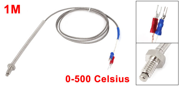Main Color Silver Tone,Blue,Red Transfer Type K Brand DMiotech Country of Manufacture CHINA Screw Dia 11mm/ 0.43" Fork Terminal Spacing 4mm/ 0.16" Material Plastic, Metal Wire Length 1M/ 3.3Ft Net Weight 22g Package Content 1 x Thermocouple Spring Length 92mm/ 3.6" Fork Terminal Quantity 2 Temperature Range 0 to 500 Celsius - Reviews