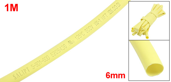 1m Length 6mm Dia 2:1 Heat Shrink Tube Shrinkable Pipe Yellow 600V