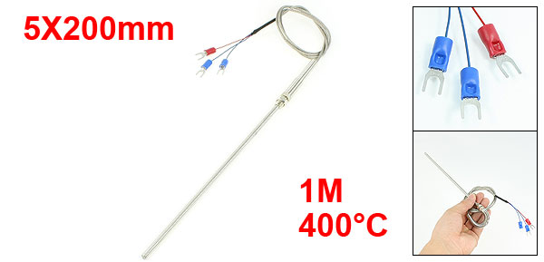Product Name Thermocouple Type PT100 Temperature Range 400°C Probe Diameter 5mm / 0.2" Probe Length 20cm / 7.9" (Not Included Flexible Section) Thread Diameter 7.8mm / 0.3" Internal Insulation Fibreglass External Shielding Metal Shield Total Length 1M / 3.28ft Fork Terminal Spacing 4.3mm / 0.17" Color Silver Tone Weight 30g Package Content 1 x Type K Thermocouple - Reviews