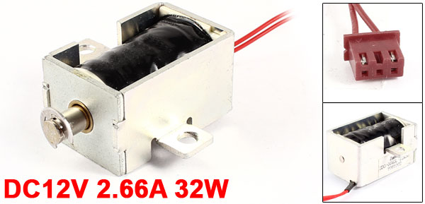 Product Name DC Solenoid Electromagnet Rated Voltage DC12V Rated Current 2.66A Power 32W Action Form Pull Rated Stroke & Force 1mm, 800g /6mm,200g Body Size(Approx) 40 x 25 x 22mm / 1.6" x 1" x 0.8" (L*W*H) Cylinder Size(Approx) 45 x 6mm / 1.7" x 0.24" (L*D) Cable Length(Approx) 66cm / 26" External Material Metal, Electronic Parts Main Color Silver Tone Weight 110g Package Content 1 x DC Solenoid Electromagnet - Reviews