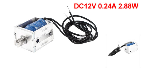 Product Name DC Solenoid Electromagnet Rated Voltage DC12V Rated Current 0.24A Power 2.88W Action Form Pull Rated Stroke & Force 1mm, 80g /5mm,10g Body Size(Approx) 20 x 15 x 25mm / 0.8" x 0.6" x 1" (L*W*H) Cylinder Size(Approx) 27 x 7mm / 1.1" x 0.27" (L*D) Cable Length(Approx) 29cm / 11.4" External Material Metal, Electronic Parts Main Color Silver Tone Weight 40g Package Content 1 x DC Solenoid Electromagnet - Reviews