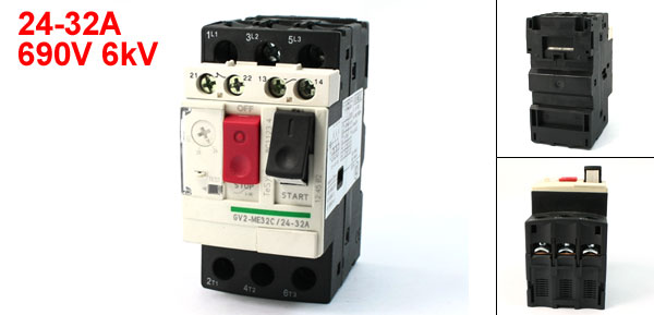 Product Name Motor Circuit Breaker Model No. GV2-ME32C Type 1NC 1NO 3 Phase Thermal Protection Adjustable Range 24-32A Ue 690V 50/60Hz Uimp 6kV Breaking Capacity Ue Icu Ics%Icu 230/240 50kA 100 400/415V 10kA 50 500V 4kA 75 690V 3kA 75 Overall Size (Approx.) 89 x 45 x 80mm / 3.5" x 1.8" x 3.15"(L*W*H ) Material Plastic, Electric Components Weight 277g Package Content 1 x Motor Circuit Breaker - Reviews