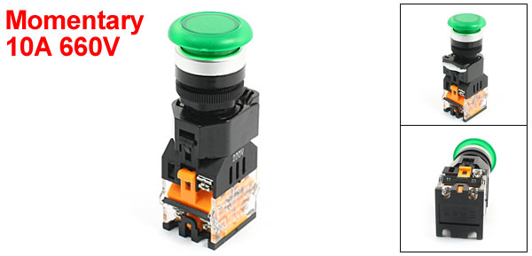 1NO 1NC Momentary Mushroom Head Green Light Push Button Switch 660V 10A