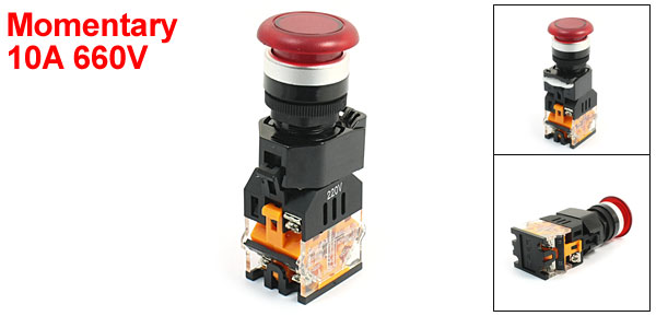 1NO 1NC Momentary Mushroom Head Red Light Push Button Switch 660V 10A