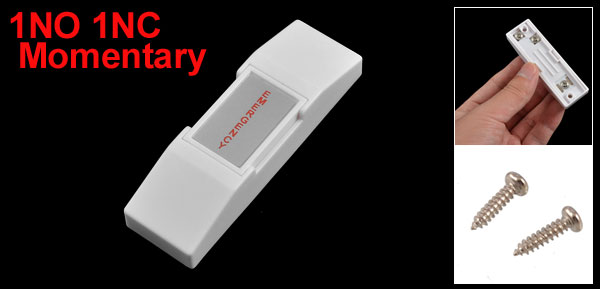 Product Name Push Button Switch Use for Electric Door Material Plastic, Metal Color White Action Type 1NO 1NC Contact Type Momentary Size 7.6 x 2.3 x 1.4cm/ 3" x 0.9" x 0.55"(L*W*T) Mounted Hole Dia. 3mm/ 0.118" Weight 16g Standard Structure 1 x Electric Door Push Button Switch