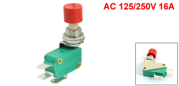 1NO 1NC SPDT Momentary Red Pushbutton Micro Limit Switch 16A 125/250VAC