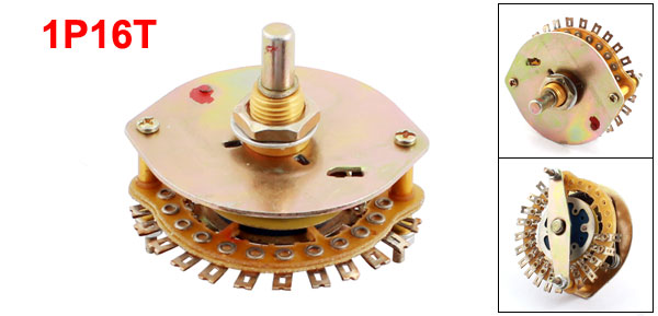 Product Name Rotary Switch Contact Type 1 Pole 16 Position(1P16T), 1 Deck Rotating Shaft Dia 6mm / 0.24" Pin Number 1*17 Thread Dia 10mm/0.4" Dimensions 5.5 x 5cm / 2.2" x 2"(Max.D*H) Material Metal, FR-4 Net Weight 60g Package Content 1 x Rotary Switch - Reviews