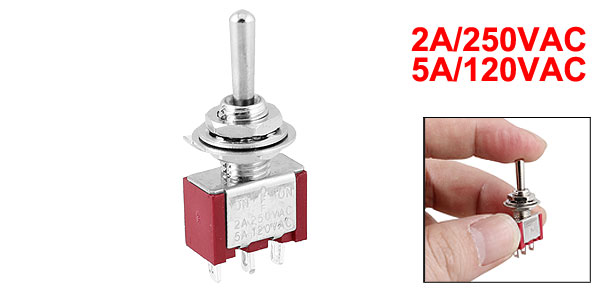 5A/120VACMain Body Size 12.8 x 6.9mm / 0.5" x 0.27"(L*W) Overall Height 32.5mm / 1.28" Main Material Metal & Resin Color Red Weight 49g Package Content 1 x Toggle Switch - Reviews