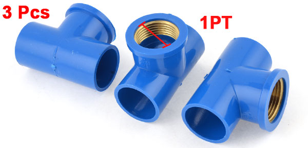 Product Name Pipe Connector Type Tee Shaped Female Thread Dia 30mm / 1PT Adapter Inner Dia 32mm/1.27" Overall Size (Approx.) 75 x 46 x 57mm / 2.9" x 1.8" x 2.2"(L*W*H) Material U-PVC,Metal Color Blue Weight 199g Package Content 3 x Pipe Connectors - Reviews