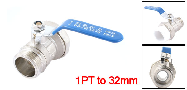 1PT to 32mm Inner Hole Dia Blue Lever Copper Plating PPR Ball Valve