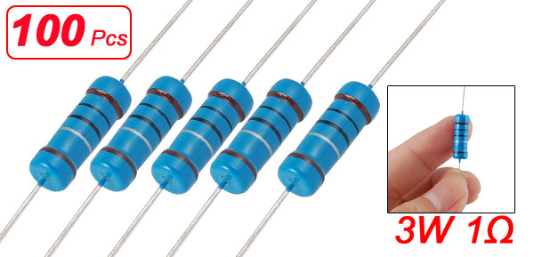 1R 1% 1 Ohm 3W Axial Lead Metal Film Resistors 100 Pcs