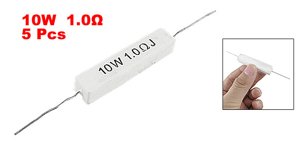 Product Name Cement Resistor Body Material Cement Power 10W Resistance 1.0Ω Tolerance ±5% (J) Body Size (Approx.) 48 x 10 x 10mm/1.9" x 0.4" x 0.4" (L * W * H) Lead Diameter(Approx.) 0.8mm/0.031" Color White Weight 46g Package Content 5 x Cement Resistors - Reviews