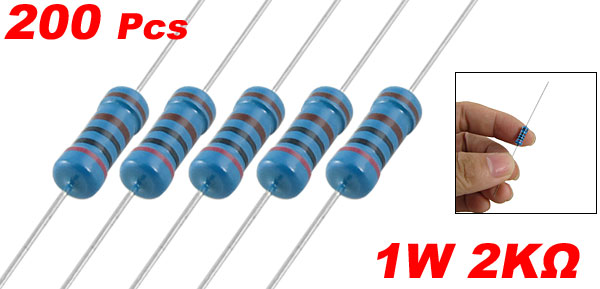 Product Name Metal Film Resistor Quantity 200±2% Pcs Rated Power 1W Tolerance ± 1% Resistance Value 2KΩ T.C.R(Temperature Coefficient) ±50ppm/°C Body Size 4 x 11mm/ 0.16" x 0.43" (D*L) Leads Dia (Approx.) 0.5mm/ 0.02" Total Length (Approx.) 60mm/ 2.4" Color As Picture Shown Net Weight 111g Package Content 200 Pcs x Metal Film Resistors - Reviews