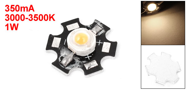 Product Name LED Emitter DC Forward Voltage 3.0-3.9V DC Forward Current 350mA Luminous Flux 110-120LM Color Temperature 3000-3500K Power Consumption 1W Material Electronic Parts Emitter Diameter 5mm/ 0.2'' Heat Sink Base Dia 20mm/ 0.79'' Light Color Warm White Net Weight 2g Package Content 1 x LED Emitter - Reviews